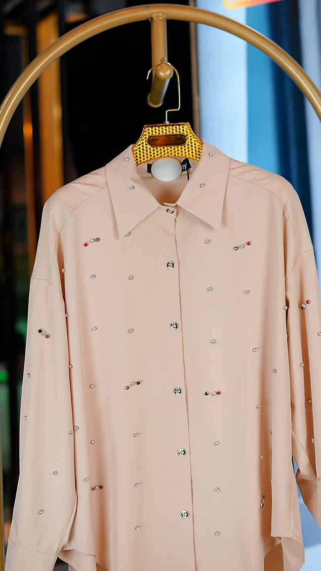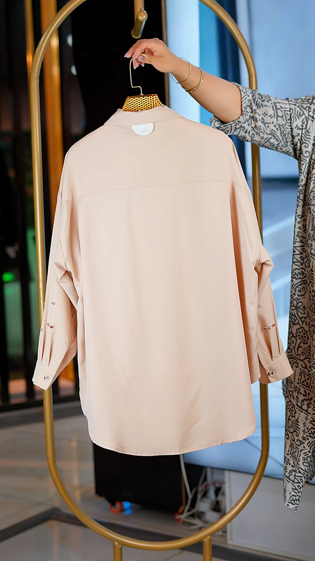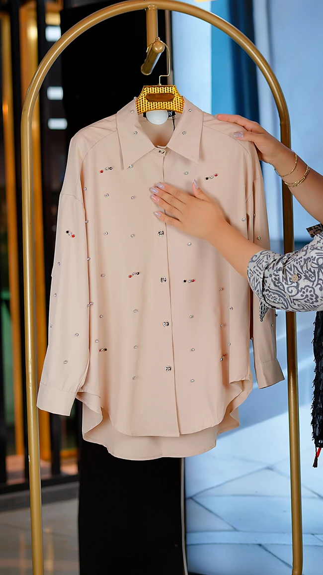 🌟 شومیز کرپ الیزه پارچهی لطیف نگینکاری