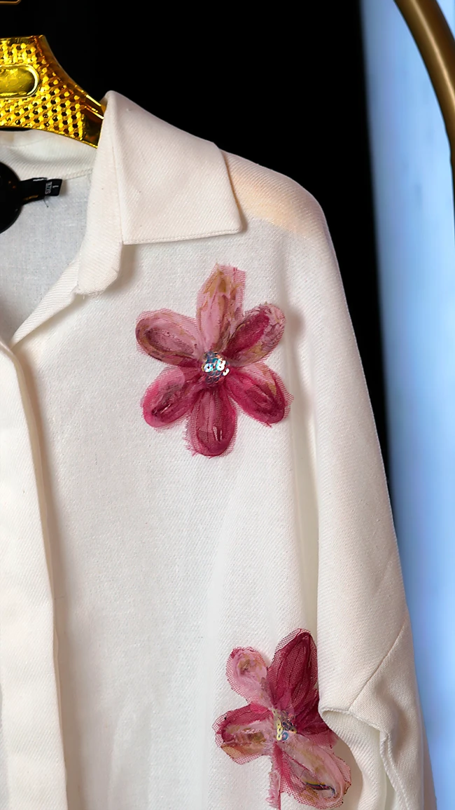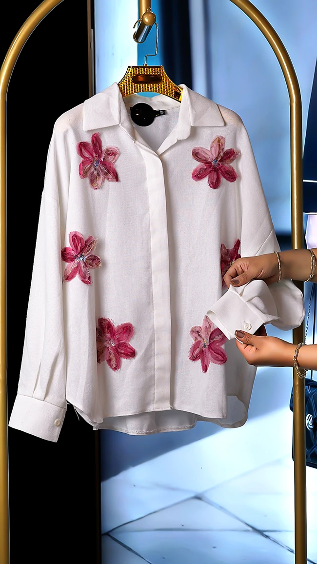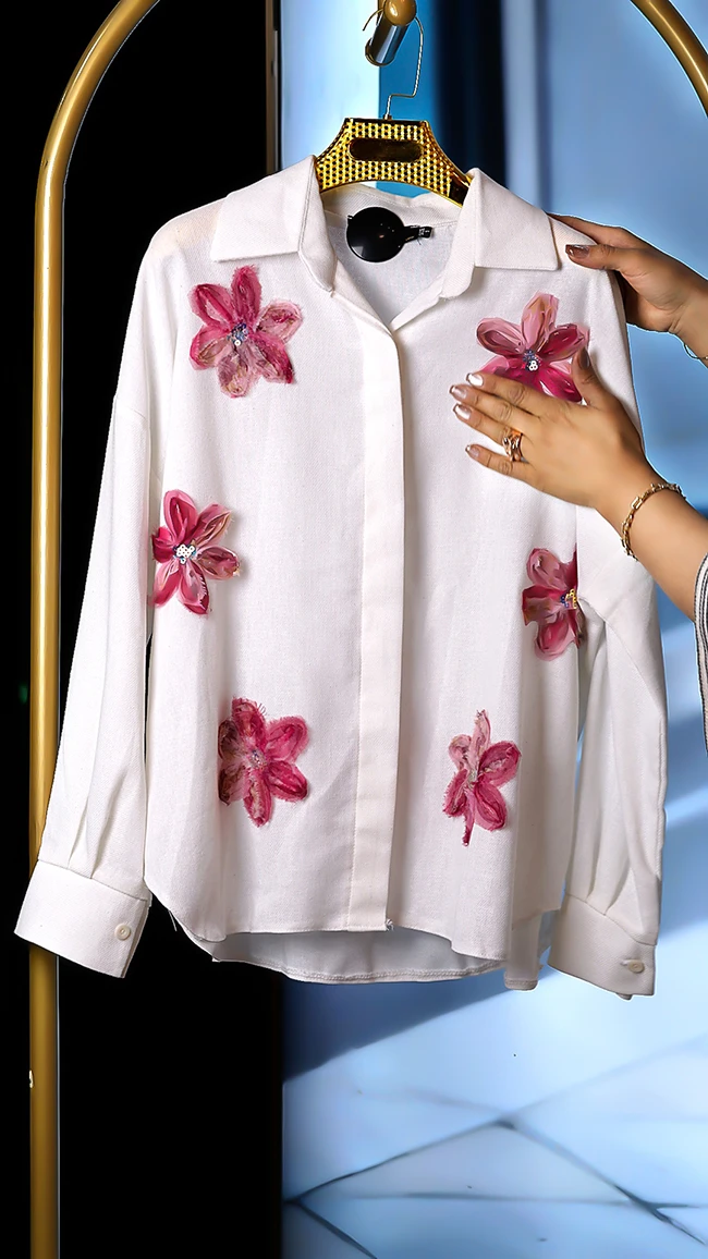 🌟 شومیز لینن وارداتی با گلهای برجسته