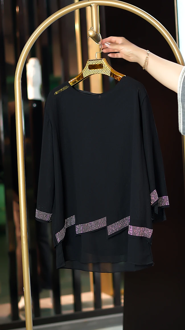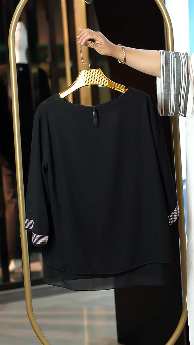🌟 شومیز مشکی حریر نگینی دو تکه