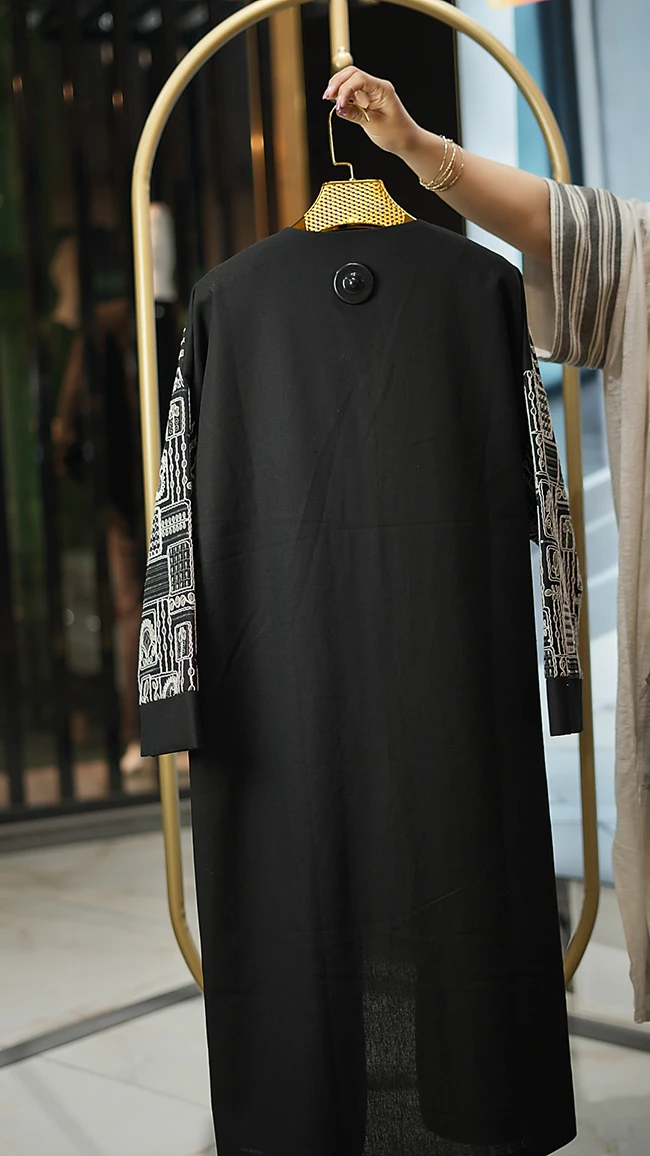 مانتو بلند زنانه مدل توشار لینن مشکی جلو باز یقه هفت با خرجکار خاص