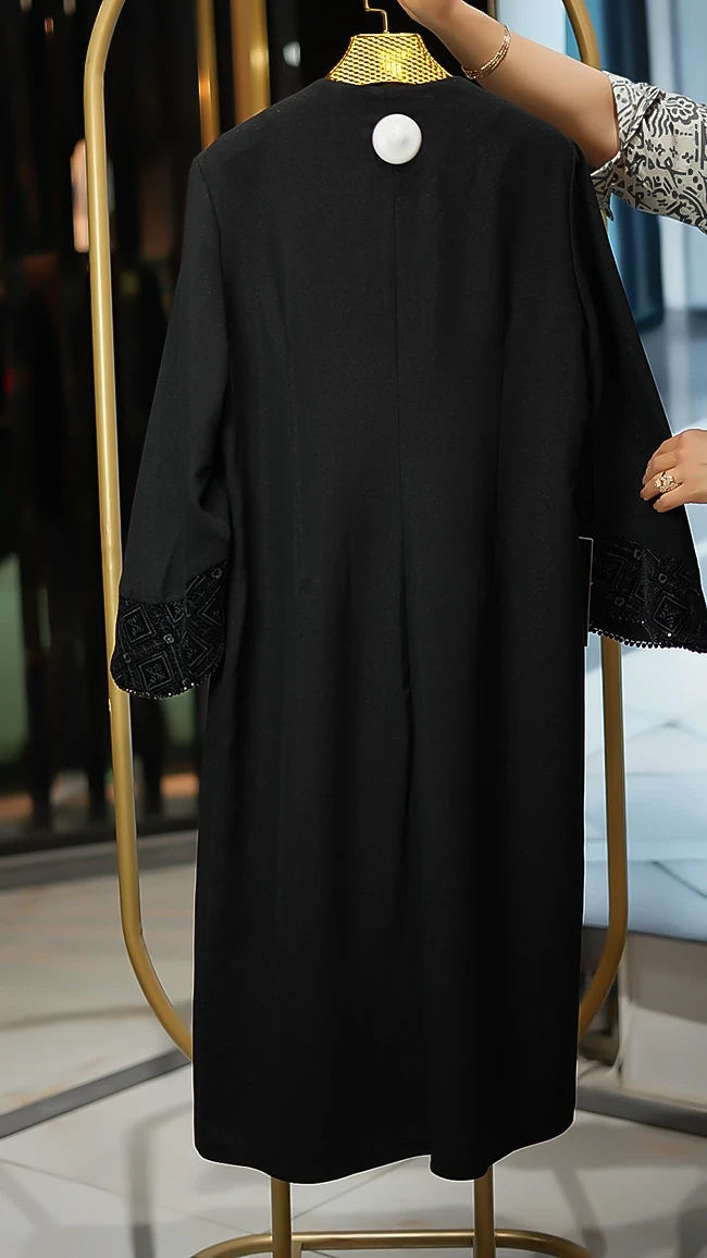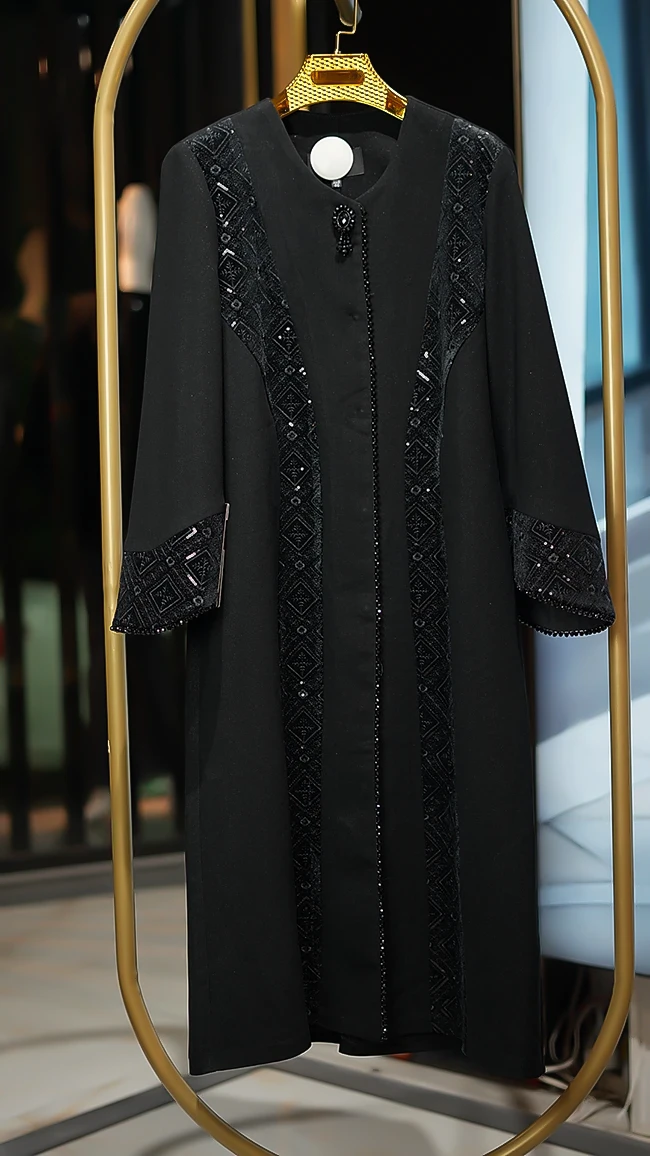 مانتو بلند سایز بزرگ زنانه با طراحی خاص و خرجکار مخمل