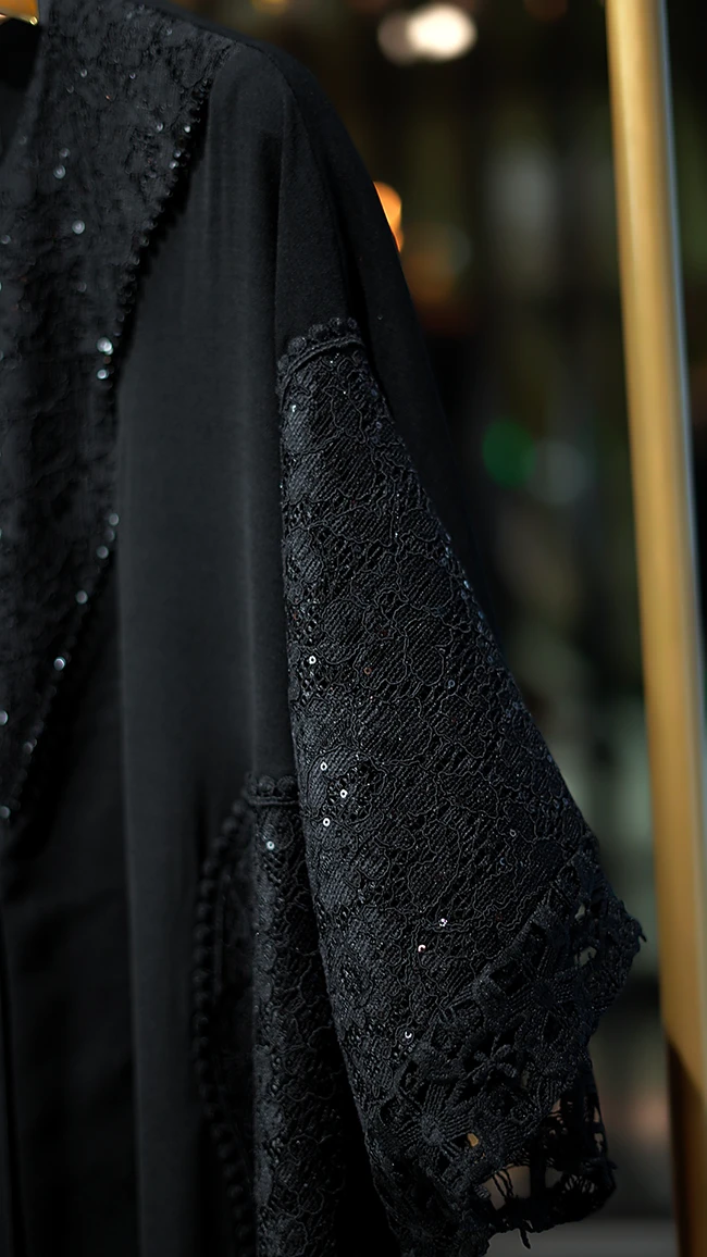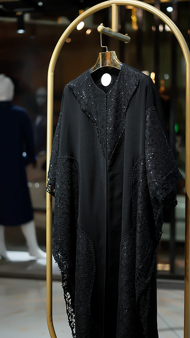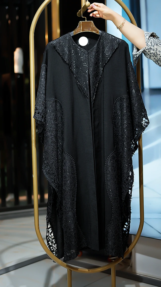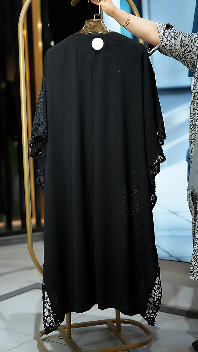 🌟 مانتوی عبایی مشکی با طراحی گیپوردوزی خاص و شیک