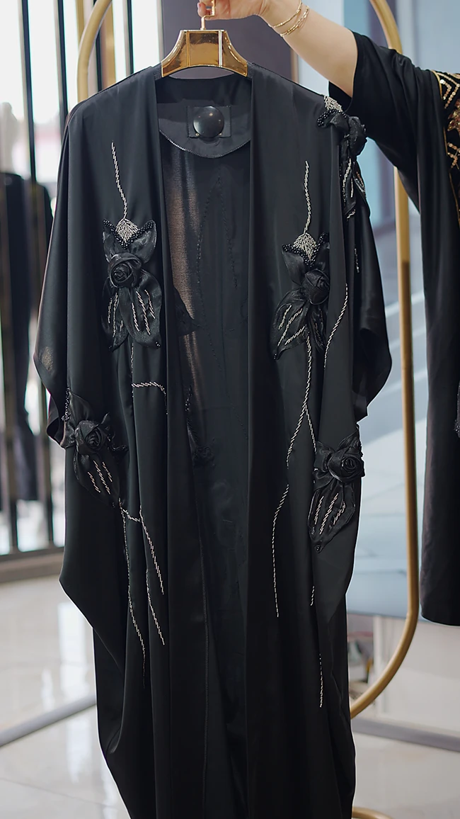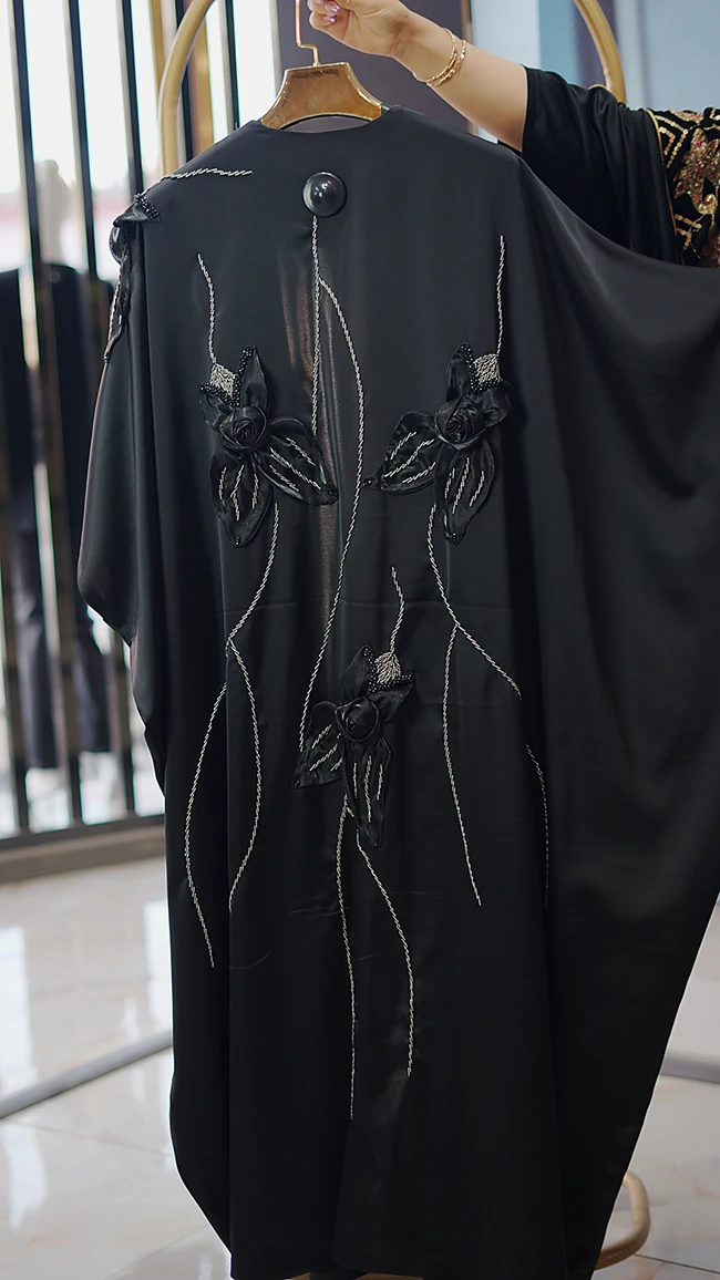 مانتو عبایی گلدوزیدار زنانه ساتن مرواریدی فریسایز ۴۰ تا ۵۵ با قد ۱۳۸ سانتیمتر