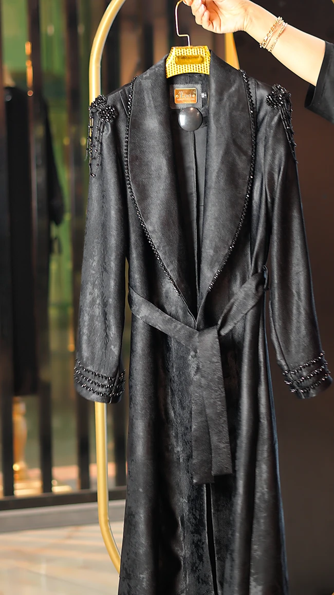 مانتو مجلسی کارشده با یقه آرشال و دوخت ظریف دستی – تنخور لاکچری