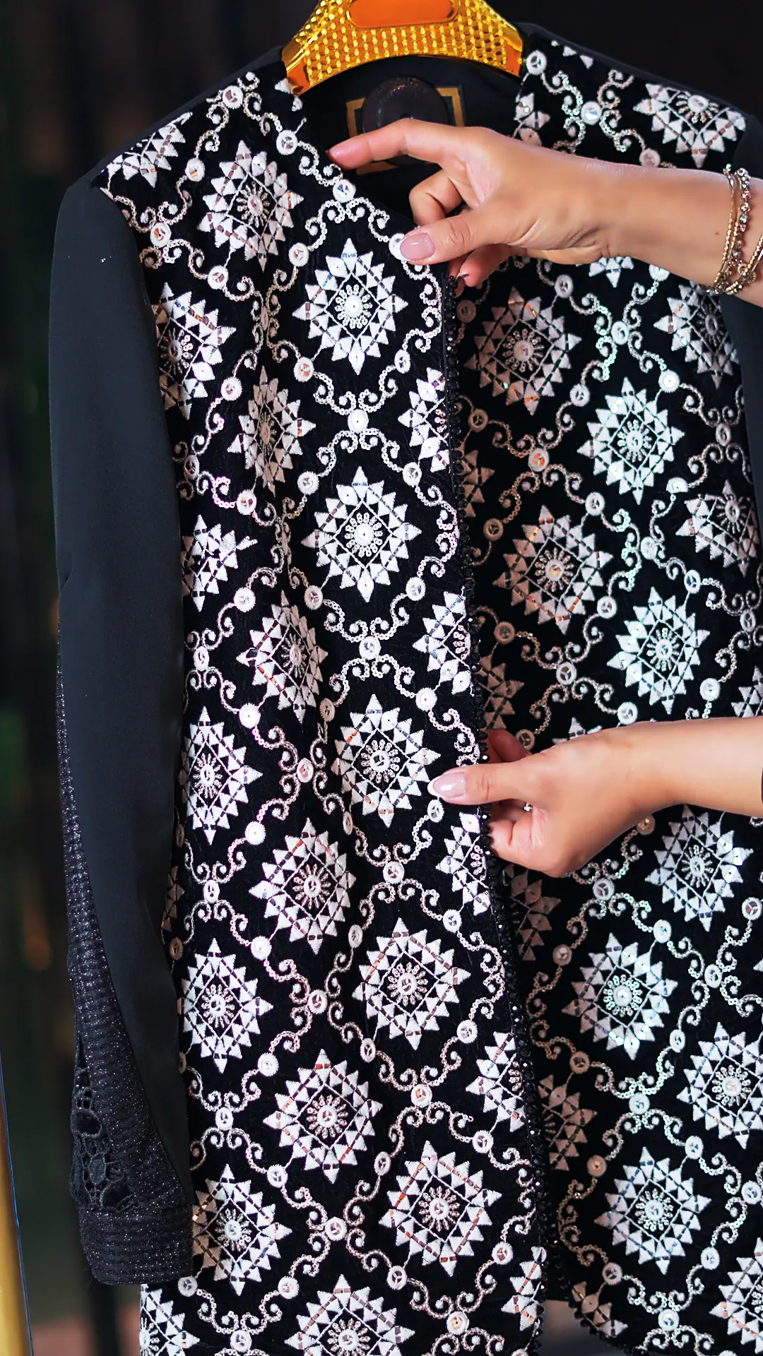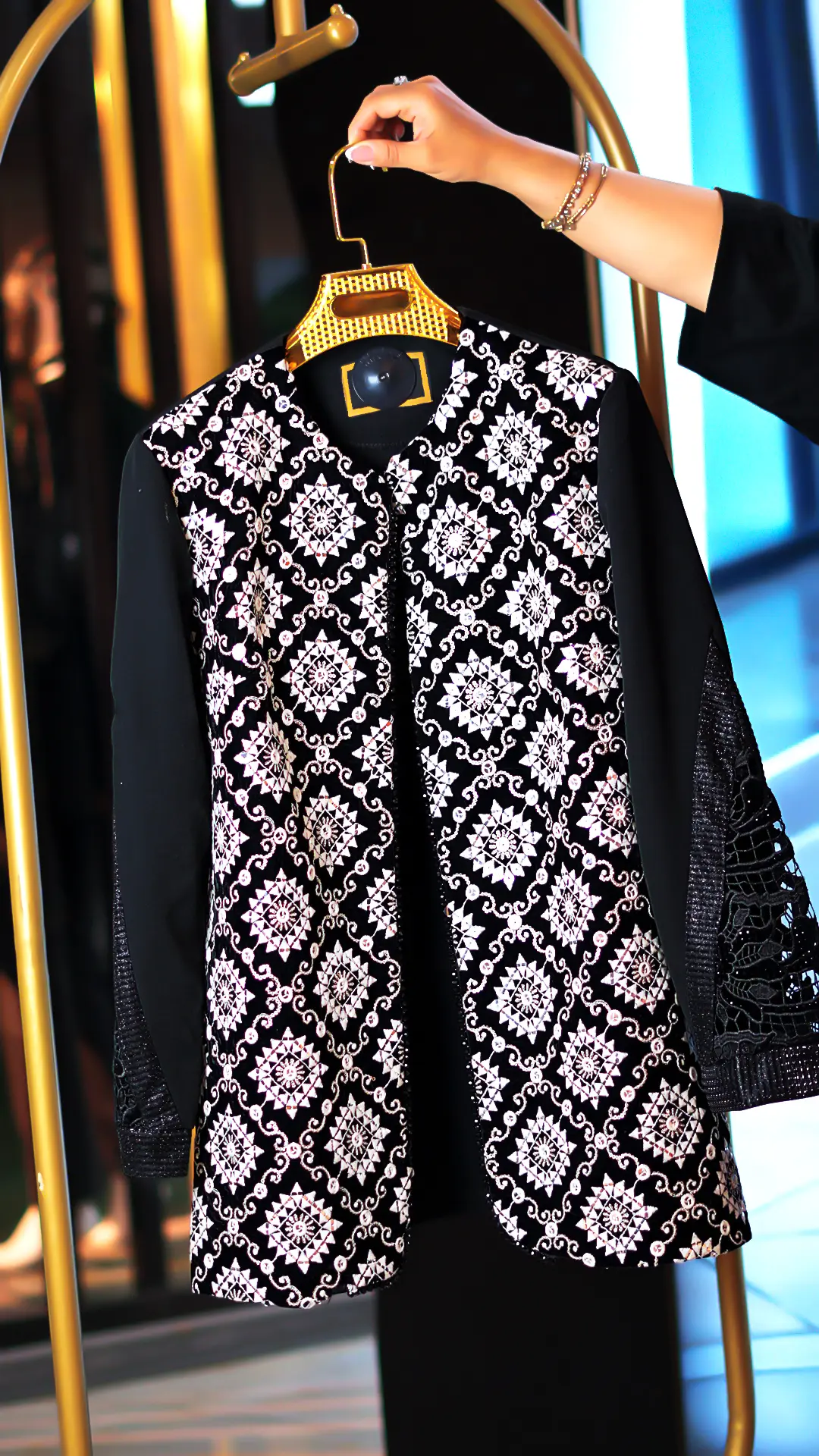مانتویی خاص و هنری، ترکیبی از سوزندوزی سنتی با طراحی مدرن؛ انتخابی فوقالعاده برای خانمهایی که بهدنبال یک استایل شیک و متفاوت برای مجالس هستند.