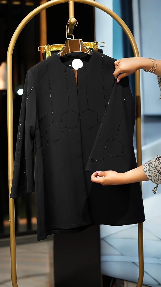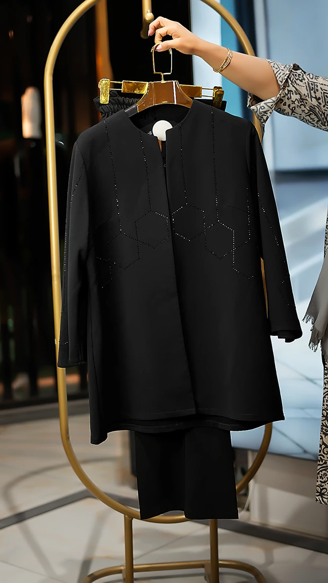 🌟 کت و شلوار مشکی لاکچری با نگینکاری
