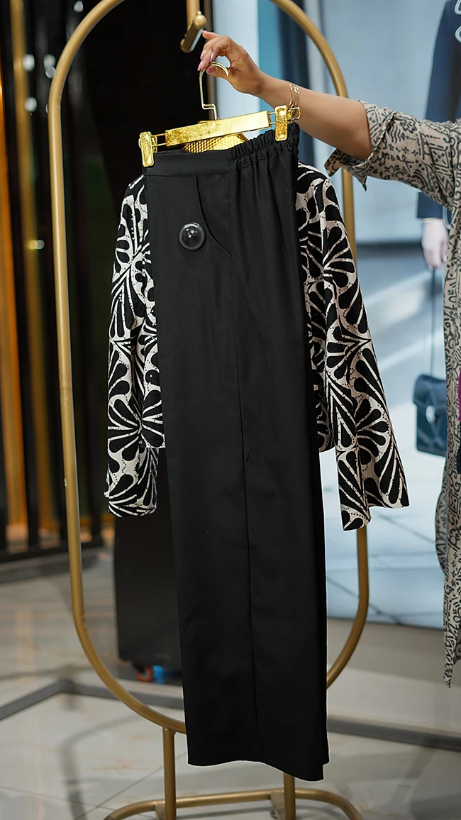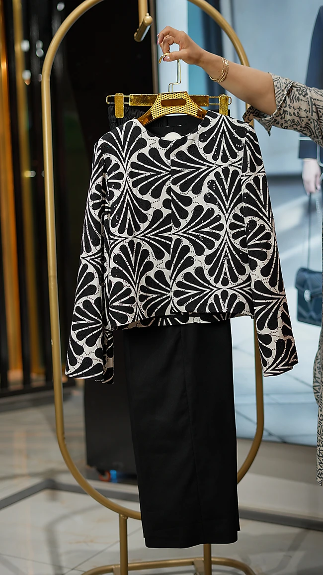 🌟 ست خاص کت کراپ طرح‌دار و شلوار بگ مشکی